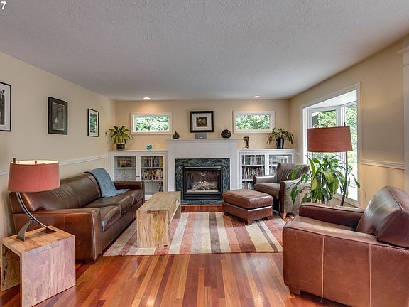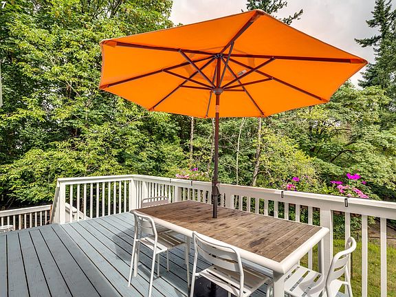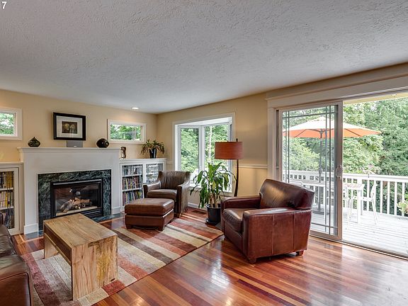 Urban farm w/private setting on 1.33 acres, close-in Cedar Mill. Features tile floors, an entryway, large study, a wet bar, guest suite & covered patio on the main. Upstairs, a beautiful master suite, dining & living room area includes hardwood floors, bay windows, a gas fireplace w/leaded glass built-ins & a spacious elevated deck which overlooks the property w/2 pastures, 2 goats, garden beds, chicken coup,creek & private driveway.