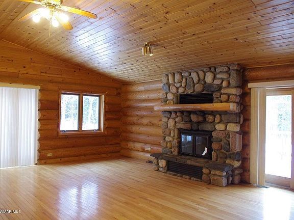 Yellowstone Log Home with 3 bedrooms and 2 baths just North of Bemidji on 2.6 wooded acres. Features large kitchen, open floor plan, central wood burning fireplace, hardwood floors, and a full 4' crawl space for storage. Includes large finished 32x52 shop that is plumbed in for floor heat.