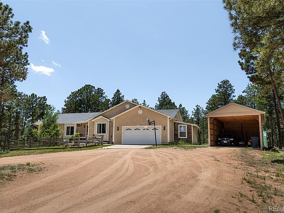 Wow....where to start on this amazing home, If peaceful mountain living is what you may be looking for without having to travel outside of the Springs then this will be a MUST SEE home for you, No shortage of space here-not to mention 5 acres of land too! So many updates over the last 6-12 months to include all 3 bathrooms have been remodeled-Both main level and In law suite kitchens have been updated with new countertops and all cabinets professionally painted, Every bit of flooring in the home has been recently updated & brand new carpet! All the lighting in the home, There is a large entry foyer on the main level of the home with beautiful new wood tile & guides you directly into the living area that has a gas fireplace for those cozy fall/winter evenings, The main level has a total of 5 bdrms (1 non conforming), 2 bdrms in basement & Primary bedroom is an amazing size with French doors that lead to the large covered back patio deck- Primary Suite has"Two" walk in closets! In addition to all the recent upgrades-there is also a back yard chicken coop and a great size greenhouse for growing all your own veggies/flowers, Current homeowner has an area devoted to laying out in hammocks just taking in the sounds of nature, The list of items this home has to offer goes on and on *Additional back up septic system, Whole house filtration system, Whole house humidifier, Brand new Roof for home and RV port* You just have to come see it in person!!