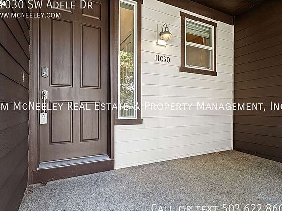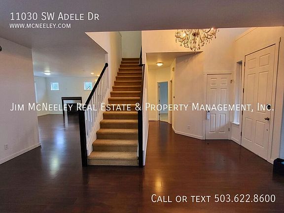 One small pet under 30 pounds is possible with an increased deposit of $500 per pet. Conveniently located near Highway 26/217 and Nike is a gorgeous 4-bedroom 2.5 bath home. Step inside and you'll be greeted by soaring vaulted ceilings and stunning wood floors. This home includes a spacious living and dining room perfect for entertaining. The kitchen opens up the family room with a gas fireplace, and slider to the large deck. The kitchen will certainly grab your attention with its beautiful quartz countertops, eating bar, and high-end stainless-steel appliances. The main floor includes a bedroom, half bath, and 2 car garage. Upstairs showcases the large primary bedroom, with a walk-in closet, soaking tub, shower, new quartz countertops, new tile flooring, and dual vanity. The upstairs also includes 2 additional bedrooms, an updated full bath, and a washer/dryer. The home also includes AC. Directions: North on Cedar Hills Blvd, East on Celest Ln, North on SW 110th Ave, West on Adele Dr. (John) To Apply for This Property (Use links on listing on our company website - mcneeley . com. They may not appear on third-party sites) - Pay screening fee: $65.- If you have a pet, assistance animal, or to certify that you do not have animals: https jimmcneeleyrealestatepm. See pet policy on property listing) Date Available for Viewing (subject to change): NOW Please submit inquiry online Screening Fee: $65/person - Pay via PayPal link on listing on our website County: Washington Lease Terms: 12 Months Heat: Gas AC: Yes HOA: NO HOA Landscaping: Tenant Responsibility Utilities included in rent: No utilities included Utilities paid by tenants: Water, Sewer, Gas, Electric, Garbage Appliances: Refrigerator, Gas Stove/Oven, Dishwasher, Washer/Dryer, Microwave, Garbage Disposal Year Built: 2003 Levels: 3 -level Parking: 2-Car Garage Fenced Backyard: Yes Vehicle Restrictions: NO RV, trailer, or boat parking allowed Schools: Verify online Proof of Renter's Insurance will be required before move-in: JMRE must be listed as an Interested Party and a minimum personal liability limit of $100,000.00 **Smoking is not allowed in any of our rental properties. Some properties may not allow smoking on the entire premises. This includes the garage + within 10 feet of the property ** INFORMATION NOT GUARANTEED AND SHOULD BE VERIFIED. SQUARE FOOTAGE IS APPROXIMATE & MAY INCLUDE BOTH FINISHED & UNFINISHED AREAS. SCHOOL AVAILABILITY SUBJECT TO CHANGE.