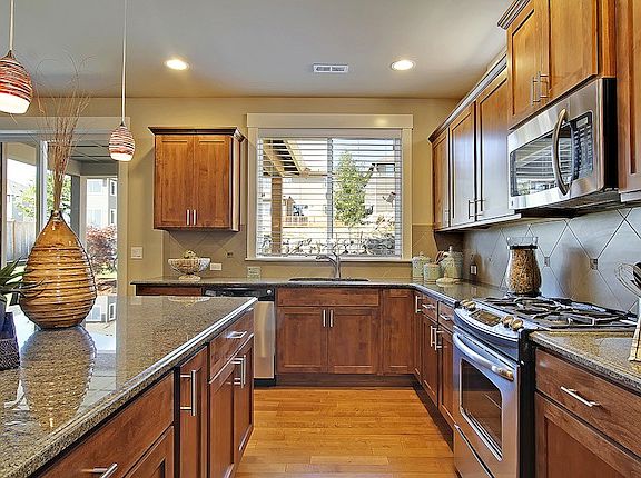 This custom home has stunning views of the Puget Sound and Whidbey Island off the Master b/r and boasts 4 b/r's, 2.75 baths, bonus rm, formal d/r, den & lg family rm. Hardwood flooring is abundant on the main floor as as well as solid quartz countertops and stainless steel appliances in kitchen. An eco-friendly, low maintenance deck is just off the dining area. Enjoy the views from this Craftsman style home built by Burnstead Construction LLC.