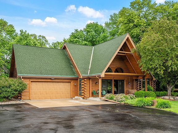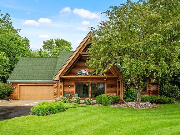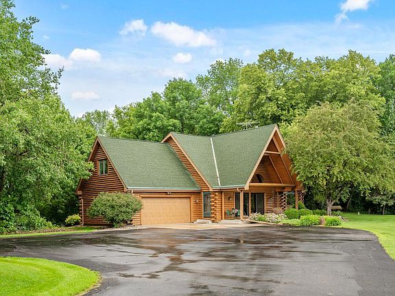 Get ready to be impressed as you tour this rare 2x6 framed home with full “D” log exterior. All the beauty and charm of a real log home and the energy & structural benefits of a 2x6 built one and a half story keepsake home. Over 32 acres of forest, garden and tillable land waiting for your family, horses, hobbies & hunting! Attention contractors, car collectors and hobby farm enthusiasts! A beautiful 3-bedroom 4 bath home with a massive floor to ceiling real wood-burning heat return airtight fireplace offering true heat recovery every time or continue as a convenient gas fireplace. (note the gas conversion). Be impressed with real log beams inside & out on the covered entry portico and inside the soaring great room framed by log railings, white cedar ceilings and oversized energy efficient windows. Main floor living with oversized primary suite and laundry on the first floor. Open kitchen with ample cabinets, down draft JennAir oven/range & top-grade sub-zero refrigerator. Enjoy morning coffee and big group entertainment on the 3-season porch overlooking the wildlife forest. A bonus screen porch deck & patio area offers additional exterior entertaining and easy access to 32 acres. Lower-level features- big open rec room, classic 8-person sauna, additional ¾ bathroom, mechanical storage, save money and high efficiency closed loop geothermal heating system plus updated HVAC – note even air conditioning savings with geothermal. Toys, livestock/horses and massive RV storage on 2 major outbuildings and large covered steel buildings with 30x40 concrete floors, electric, and 14’+ floors ideal for larger RVs and big trucks. Power garage doors and a bonus lean-to offers everyone a place to walk or play. Outbuildings included as-is with minor cosmetic damages. Ideal for home-based business. (check with county regarding business use). Turkey, deer, waterfowl and upland game abound on 20 acres of forest and over 9 acres tillable. Special note: A new septic system is on the way! Don’t miss the opportunity to see this beautiful 32 acres with endless potential for yourself! Schedule a private tour today!
