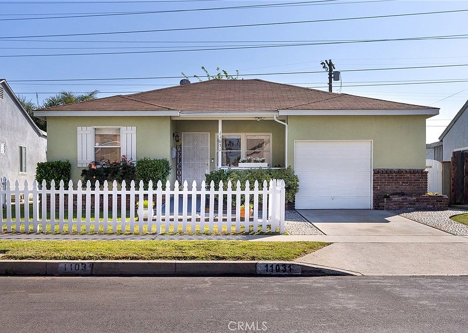 Welcome to 11031 Arbuckle Ave! This cozy 2-bedroom, 1-bath home is full of charm and sits behind a classic white picket fence in the heart of Mission Hills. Inside, you’ll find a bright living room with wood-style floors, and lots of natural light. The kitchen has cheerful yellow and white cabinets and a warm, farmhouse feel.