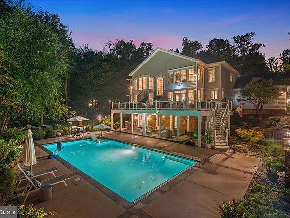 An exceptional private estate tucked away on an expansive 3-acre lot in one of Woodbridge’s most desirable enclaves. Perfectly positioned just a short walk from the scenic Occoquan River, this estate offers a rare combination of serene nature views, resort-style amenities, and an elevated interior design. From the moment you arrive, the estate's grandeur is undeniable. The circular driveway with brick columns and lighting create a grand entrance and lead to the redesigned front portico with black standing seam hip roof and square columns. A slate walkway, flagstone accent walls and uplighting on the home and trees along the driveway add to the refined exterior. The lot has been professionally landscaped and offers mature trees, flowering shrubs, and seasonal plantings and includes a 21-zone lawn irrigation system for effortless maintenance. A breathtaking foyer sets the tone for the elegance found throughout the home. Three-piece crown molding decorate the main areas and a built-in sound system add to the luxury. The kitchen is every chef and host's dream, with an upgraded gas cooktop and range hood, stainless steel appliances, expansive island with beverage cooler and ample space throughout for the host and guests alike. A main-level master suite offers flexibility and convenience for one-level living. Main-level laundry room includes new cabinets, granite-topped sink, decorative paneling, and a plantation-shuttered window. As you ascend the grand staircase, you're greeted by beautiful hardwood flooring, accentuated by a decorative inlaid medallion that adds a touch of elegance and sophistication. The journey leads you to the upper-level primary suite, a luxurious haven where every detail is meticulously crafted to offer comfort and style. Here, the enhancements are numerous, starting with a tray ceiling that boasts intricate molding and recessed lighting, creating a warm and inviting ambiance. The serene views from the primary suite are truly breathtaking, offering a picturesque overlook of the sparkling pool below. Imagine waking up each morning to the gentle shimmer of water reflecting the soft morning light, or unwinding in the evening with the tranquil sight of the pool under a starlit sky. The seamless shower glass panels in the suite's bathroom add to the sense of openness and continuity with the outdoors, while an added linen closet ensures ample storage for all your needs. Plantation shutters provide not only privacy but also precise control over the natural light that floods the room. Whether you prefer the suite bathed in the gentle glow of the sun or cloaked in serene tranquility, these shutters offer the flexibility to create your ideal environment. The upper level is thoughtfully designed to offer both privacy and comfort, featuring a secondary staircase that provides convenient access to this serene enclave. In addition to the luxurious primary suite, the upper level boasts three additional bedrooms, each equipped with its own en-suite bathroom. These well-appointed bedrooms provide ample space and privacy for family members or guests, ensuring everyone enjoys their own personal retreat. The en-suites are designed with modern elegance in mind, complete with high-end fixtures and finishes that enhance the overall sense of luxury on this level. The fully finished lower level is a masterpiece of comfort and entertainment, offering a luxurious retreat within your home. It features a spacious king bedroom suite, complete with a generous closet, an inviting sitting area, and elegant plantation shutters that provide both privacy and style. The spa bath is a sanctuary of relaxation, boasting a frameless glass shower enclosure with dual entries, ensuring convenience and a touch of opulence. For the wine connoisseur, a custom wine cellar awaits, adorned with a striking mosaic tile feature wall that adds an artistic flair to your collection. The entertainer's bar is a hub of hospitality, fully equipped with a si