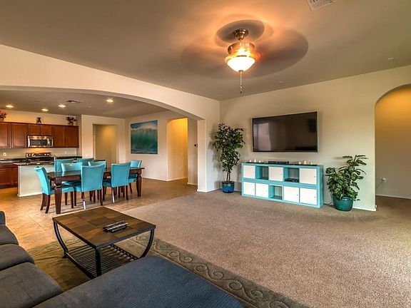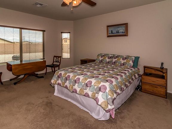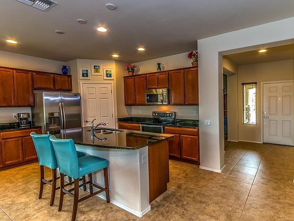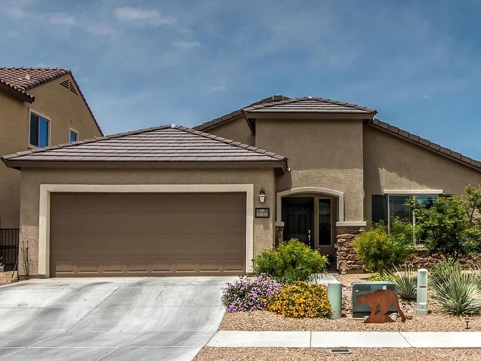 For more information on this property, contact the Listing Agent, Rosa Ivette Class at (520) 407-8685 or RClass@LongRealty.com. Spectacular Pulte Manzanita model with 3 bedrooms, 2 bathrooms, plus Den/office on a premium corner lot. Huge master suite with bay window, dual sinks, and expanded walk in master shower with a rain showerhead and built-in bench. Gourmet kitchen with granite counter tops, walk in pantry, stainless steel appliances, and upgraded 36'' cabinets. Energy efficient home with free and clear Solar panels. Enjoy the privacy of your backyard and magnificent mountain views! Come and enjoy the 50 acres of common areas featuring playgrounds, picnic areas & BBQ grills. Take a swim in the community pool w/ beach entry, lap pool, and sunbathe at the outdoor seating and lounge area. Enjoy the 5,000 sqft community center with kitchen & meeting rooms.