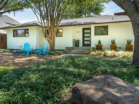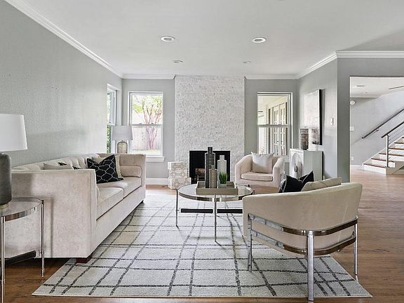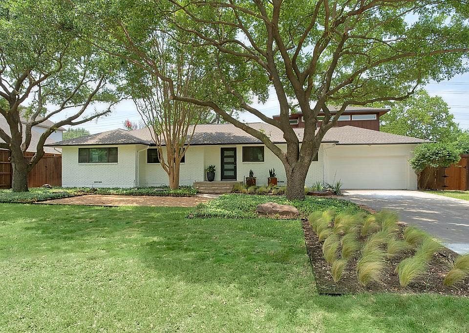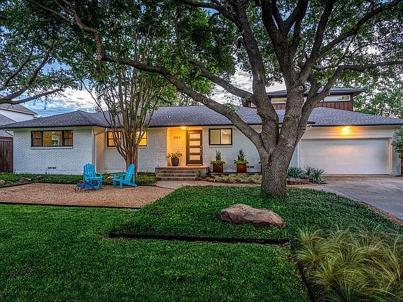 Light-filled mid-century modern in prime Preston Hollow location w open floor plan nestled on .352 acre steps from Northaven Trail. Foyer opens to formal living anchored by fireplace & connects to kitchen w sep dining area. Eat-in kitchen feats quartz waterfall island, SS appl w gas range & dbl ovens, built-in fridge & microwave. Addl living area off dining. Master w sitting area opens to backyard & feat marble bath w dual vanities, garden tub & sep shower, water closet & lrg walk-in closet. 3 addl split beds on 1st level. Sep laundry room. Brand new 2nd story addition feat lrg bedroom w en-suite bath & playroom over 2-car garage. Ample storage throughout. Expansive backyard feats covered outdoor living.