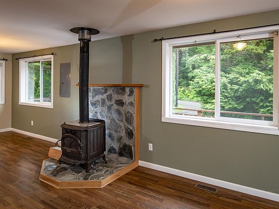 - Fireplace features: wood stove