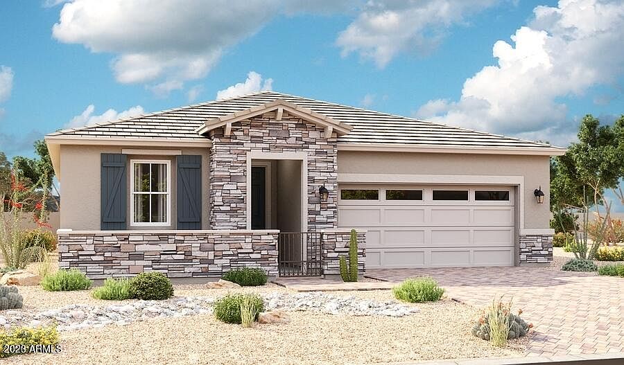 Welcome to this stunning Slate home, ready for quick move-in! Included features: a charming covered entry; a spacious great room with center-meet doors leading onto a tranquil covered patio; a well-appointed kitchen boasting granite countertops, a center island, a walk-in pantry and stainless-steel appliances, including a gas range; a dining nook; a convenient laundry with a top-load washer and dryer; a lavish primary suite showcasing an oversized walk-in closet and a private bath; three additional bedrooms, including one with an attached bath; a third full bath and a 2-car garage. This home also offers stone tile flooring, cultured marble bathroom countertops, window coverings, ceiling fan prewiring, front-yard landscaping and a concrete-paver driveway and walkway. Tour today!