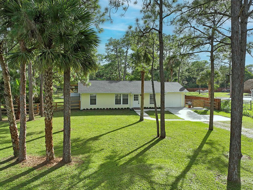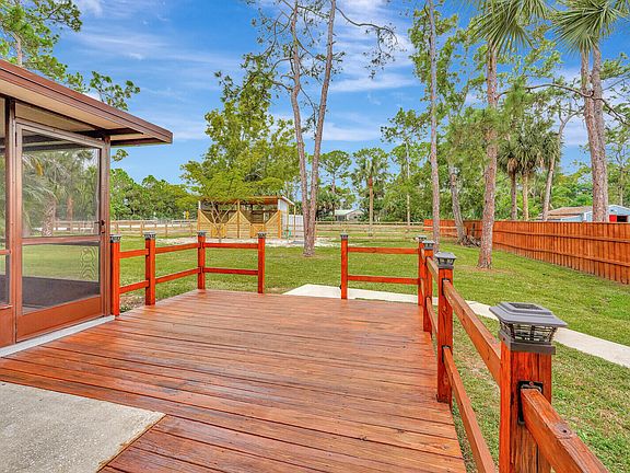 Better than BRAND NEW! This home has been completely renovated from top to bottom! Brand new roof (2023), new AC(2023),new luxury vinyl plank floor, designer inspired paint, new stainless steel appliances and so much more! Take full advantage of this extremely large corner lot and fenced in back yard! Bring your horses and any other animals you can think of! Two BRAND new horse stalls with two paddocks that offer plenty of grazing for your horse(s)! Nothing like sitting on your covered back patio or inside and having the amazing view of your horses and other animals as they roam the backyard! Location, Location, Location!! This home offers all the peace and quiet you want while still being closer than most to downtown West Palm, I 95 and all major amenities. Make this your home today!