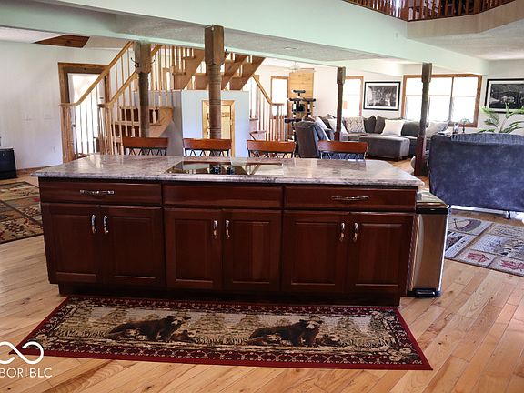 Country property on 9.77 acres with a private & fully stocked 2-acre pond, mature bass/also perfect for swimming. The home has a complete wrap-around deck, and an additional large second-story deck off the master bedroom. Huge gazebo also connected to house for entertaining. The house is a 3-4 bedroom house, with 5 indoor parking spaces, and plenty of outdoor parking. * Peaceful, secluded land full of wildlife. No restrictions/Local garbage collection/EXCELLENT internet svc, even for heavy gamers/heavy usage. 3 raised garden beds, one w/ annual asparagus. One whole-house generator plug on the back porch. Super reliable 280-foot well, brand new pump and piping installed in 2021, never has even hinted at running low, even with heavy usage (3 kids, 2 adults, livestock, etc., never had a single issue). * New HVAC system installed February 2025, controllable on Smartphone and still under warranty, new ductwork under house February 2025. Two new bathrooms. Beautiful kitchen w/: Abundant cabinet space, new full-size single-basin stainless kitchen sink, new raised dishwasher/no bending over to load/unload, new microwave, double oven, all stainless steel appliances, huge island with centered stovetop. Downstairs layout: Spacious, open-concept kitchen & living room, dining area, 1 full bath, 3-4 bedrooms. Three is listed in the ad, but technically, it is 4 total bedrooms. - Upstairs layout: Another spacious living room, giant master bedroom with another brand new full bath. Hardwood floors throughout. * 2 outbuildings (Building one is 32X51, Building 2 is 30X69, concrete floors. One outbuilding features its own central air/heat system, as well as an additional large, climate-controlled storage room. One huge dog kennel (20X15), currently used as a chicken coop. -All photos are current as of July 2025. A truly beautiful property and a rare find.