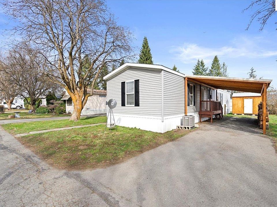 This home is only 4 years old, and is in immaculate condition! This 3 bedroom / 2 bathroom home is 1188sqft, has a great patio, a covered carport and the storage shed is included too! As you enter, you are greeted with a small mud room area, which opens up to the living room and kitchen. You won’t get cold during these North Idaho winters with the Kuma wood stove and a forced air heating system, and you’ll keep cool with central air conditioning. The master bedroom’s ensuite has recently been updated with a great sized shower, making it extremely easy for all to use. The laundry room doubles as another mud room, exiting to the covered carport and parking for up to 3 cars. Lot rent is $510 per month and includes water/sewer/garbage & snow plow service. Come see this move-in ready home in Hayden, close to shopping, grocery stores and restaurants!