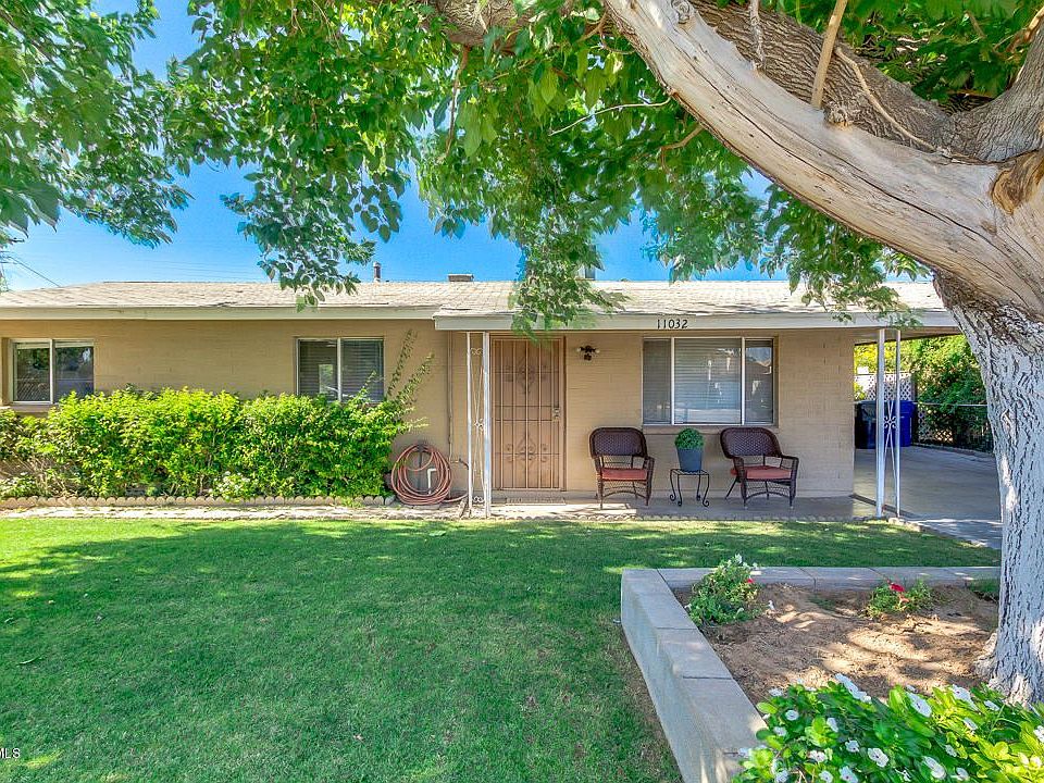 Wonderful starter home in great Avondale location! Close to shopping & I-10 Fwy. Boasting a grassy front yard with mature trees that gives lots of privacy. This charming property features cozy living room, carpet flooring throughout, 3 spacious bedrooms, 1 full bath, ceiling fans, and neutral paint for an easy care. Fantastic kitchen has high-end appliances and plenty of white cabinets. Large and grassy backyard is comprised of storage shed, fruit trees, and covered patio with skylights. Don't miss this wonderful home! Schedule a showing before it is gone!