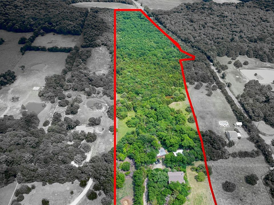 PEACE, PONDS & PRIVACY ON HEAVILY WOODED 16 ACRES! Looking for a special getaway place, but Broken Bow, OK is just too far? WELCOME to paradise and just a short trip from Dallas and N. Dallas suburbs. Plenty of pasture & woods to enjoy COUNTRY LIVING while watching sunrises and sunsets on your wrap around porch. Walk down to either of TWO PONDS hidden in the trees for some peace and quiet. Several barns are ready for your hobbies, horses, toys, etc. This country home features vaulted ceilings, open concept family, kitchen & dining with many custom built-ins. Enjoy cozy evenings in front of your floor to ceiling stone fireplace. Kit has an ovszd island, dbl ovens, tons of cabinets, wine storage, walk-in pantry. Ovszd Primary bedroom with built-in desk, and en-suite bath. Corner 2nd bedroom with built-in desk. Utility Room with closet, access to porch, can be redesigned to a 3rd Bedroom. Wash-Dry connections can be relocated to hall closet for stackable style. CLASS 4 ROOF installed 2016