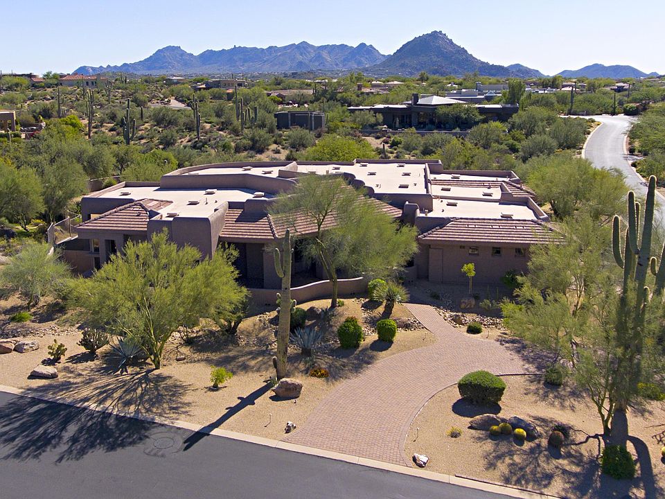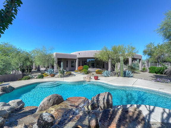 Private Estate located in the prestigious gated golf community of Boulder Crest at Troon North is situated on 1.29 Acres. Paver courtyard entryway. Spacious 4 Bedroom, 5 1/2 Baths plus Office/Study (2 Master Suites). Desirable open Great Room plan w/split Master. Chefs Kitchen w/large Island & breakfast bar & area. Slab granite Counter tops, Dacor gasCook top, dbl Ovens. Kitchen open to Great Room w/gas stone Fireplace, dec Niches &Surround Sound. Formal Living & Dining Rooms. Travertine Floors & Pecan wood Floors inbedrooms & study. All Baths have slab marble counter tops & floors. All walk-in closets done by Classy Closets. Large Master suite w/sitting area, dual Vanities, snail Shower, jetted Tub, Bidet & walk-in Closet. Private slate covered Patio & Pool area. NO STEPS.
