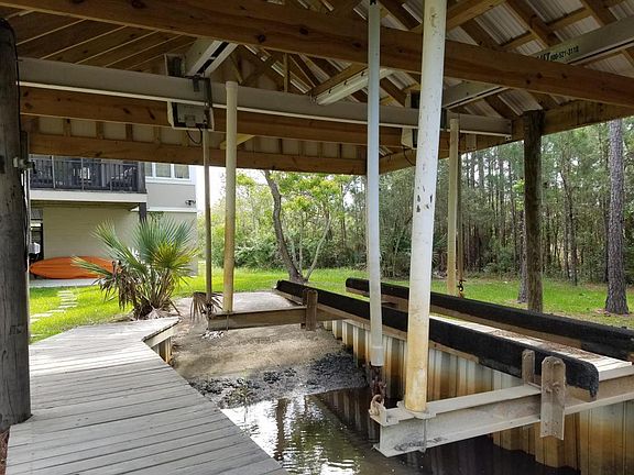Waterfront Delight - Bring your Boat and RV. Great waterfront location, private yet easy idle to the Jordan River. Nice lay-out for friends and family to get-away and enjoy the Coast. Offers 3 bdrms, two full baths, with hook-ups for the so desired 1/2 for the cookouts. Screened in deck overlooking the water and large yard. Plus covered boat lift dockage for guest boats. RV Pad large enough for a Motor Coach. All well cared for and ready for your summer fun. Grante countertops, solid surface floors, accent lighting throughout, living area offers built-ins and lots of natural light plus french doors to screened deck. Lockable storage for all your fishing and boating items downstairs. This one is more than meets the eye. This home is a 2005 Frame with a 2011 TOTAL Redo.