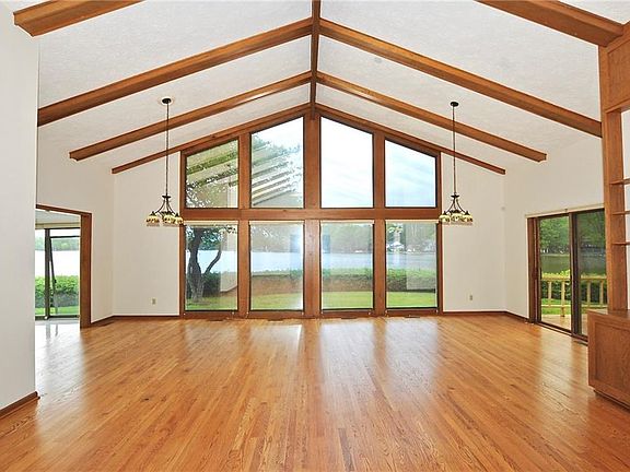 Best lakefront lot in heart of Carmel on Lake Woodland! 1/2 acre lot with 275' lake frontage!Private boat launch,boat dock & fenced rear yard.Great lake views from every room in this 4 BR/3 BA custom ranch.Updated eat-in kitchen w/SS KitchenAid appliances(all stay!), granite counter-tops & tile back-splash, along w/Italian ceramic tile flooring.Gleaming hardwoods grace the rest of home. Large formal dining room w/lots of storage.Wet bar.Soaring 2 story stone tiled entry foyer flows into 2 story great room w/stone gas log FP & wall of glass fills room w/lake views!Sunny tiled sun-room between kitchen & great room is a cozy spot to relax. 3 car fin. garage w/large bonus room & workshop.Fully irrigated yard with lake water!Freshly painted!