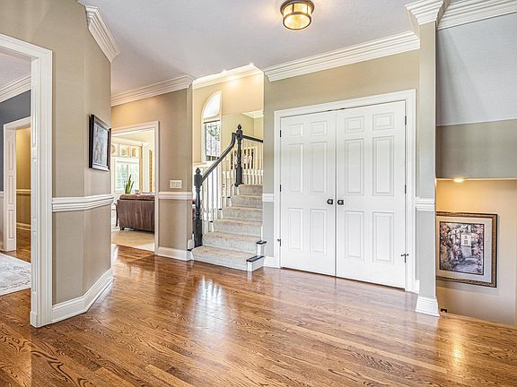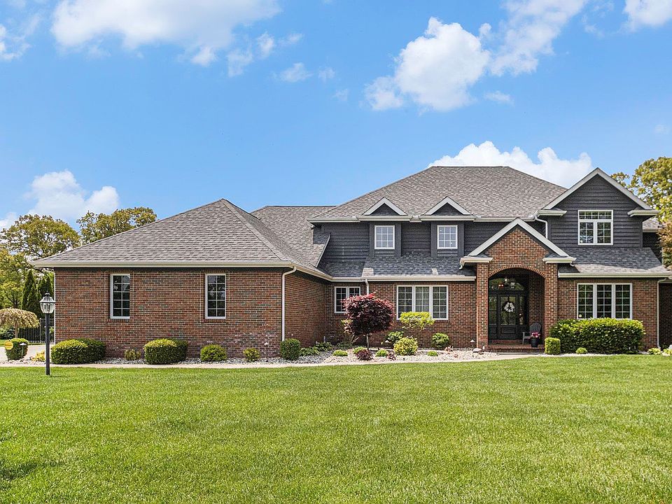 . Attention to details. Over one acre with beautiful curb appeal. Enter at walnut front door with a transom window. Separate dining room that easily seats 10. Hand-blown pendant and chandelier lighting. Open-concept kitchen with remarkable extras: 2 Alaska-white granite top islands with sinks and disposals, Thermador 6 burner stove, pot filler & double oven. Soft-touch sliding drawers for spices, cookie sheets, dinnerware, etc. Cabinet-front appliances include microwave drawer and ice maker. Industrial side-by-side refrigerator. Crown molding and custom-built display shelves plus under mount lighting. Can lighting throughout living room & bedrooms. Main floor master has His & Her walk-in closets. Enjoy your mornings from the sunroom with views of the backyard and pool. Library or game room overlooks large family room with gas fireplace. 2nd floor has additional en-suite and Jack-n-Jill bath for 3rd & 4th bdrms. Refinished upstairs bath. Need an office or extra bedroom, its just a few steps away. Finished basement with fireplace is perfect for entertainment and recreation. Craft room with cabinets for the hobbyists. Convenient whole house vacuum and heated garage. Outdoors: Decks are lined with seating and access to kitchen, family room, & sun room. Flagstone rock patio also. Enjoy continuous hot water via dual tank-less water heaters with re circulation. New high volume water softener. Summer fun in 22 x 38 in ground pool. All measurements are approximate. Buyer's agent to verify taxes.