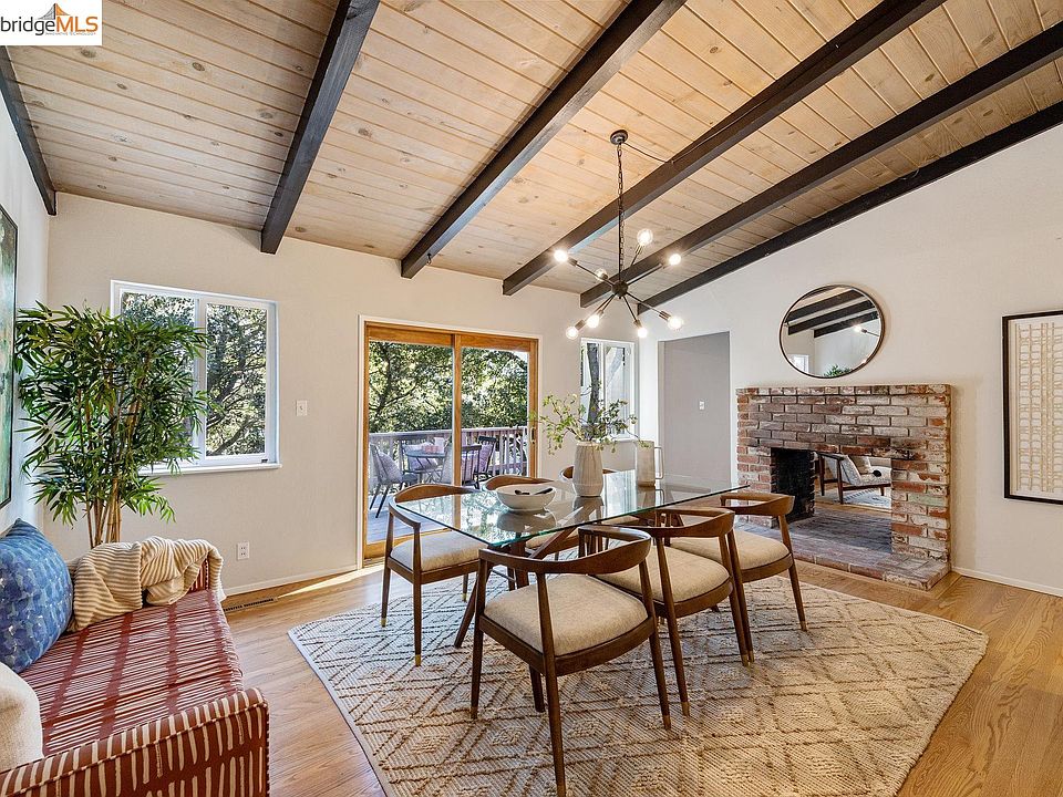 Welcome to 11037 Broadway Terrace, a spacious Mid-Century era home set amongst the trees in Oakland's Montclair district. Home offers 2Bed, 2Baths, & a huge bonus space/family room downstairs.The dining room is the jewel & heart of the home, featuring wood cladded ceiling, exposed beams,& a sliding glass door out to large deck offering breathtaking views of the trees & hills. The double hearth fireplace is a centerpiece of both the living and dining rooms and the open layout of the living room, kitchen, & dining room provides the perfect space for family gatherings. Kitchen features unique vintage details including distinctive cabinet pulls, pristine laminate counters, & spotless built-in oven. Main floor comes w/ gorgeous hardwood floors & tasteful luxury vinyl. Each bright, airy bedroom has two closets, offering ample storage space. The primary bedroom features lovely verdant treetop views & charming en suite bathroom. Downstairs you'll find the laundry & family rooms - a sprawling space that offers endless possibilities for customization. Use it as a den, game room, a home theater, a gym, or whatever your heart desires. In one of Oakland's most sought after areas, just min to Lake Temescal Regional Park, Village Market, Rockridge, & Montclair Village. Near 13/24/580.
