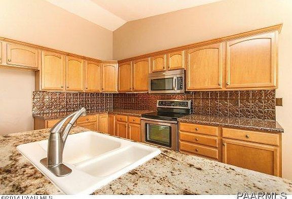 Immaculate home in the Prescott Country Club. The kitchen has maple cabinets with a custom back splash. The home features vaulted ceilings, a living room, formal dining room, and spacious bedrooms. Nice master retreat! Enjoy panoramic views from the deck. Nicely landscaped front and rear.