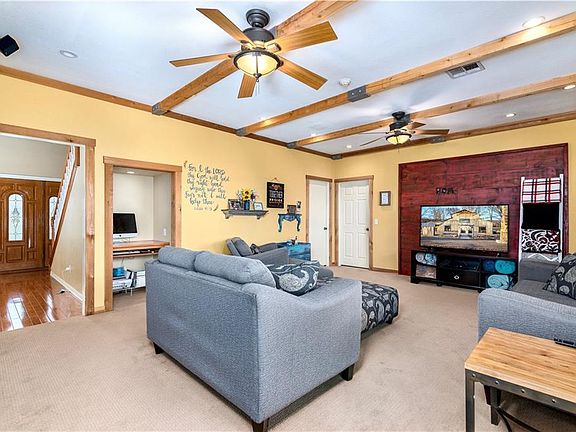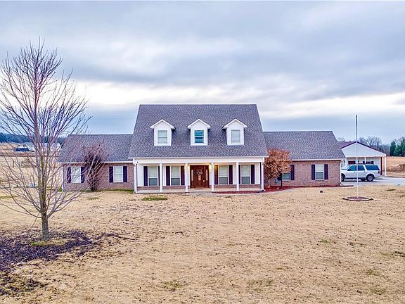 This five bedroom home has enough room for everyone and the house guests. It features a formal dining room, eat-in-kitchen, office with a fireplace, large master with built-ins, two whirlpool tubs, a laundry room with a sink and shower, large walk-in closets, and two cedar closets in the garage. The guest house has a full bathroom, kitchen area, and washer/dryer connections. Behind the guest house is a workshop with a barn/covered storage in the back. This home sits on 3 acres and is on a paved road.