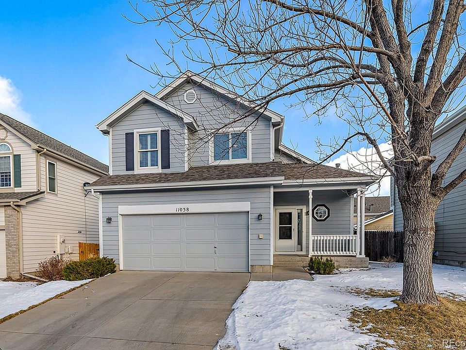 Welcome to this immaculately maintained and cared for 2-story home with stunning real hardwood flooring, upgraded carpeting, and a spacious deck. The primary master suite features a private 3-piece bath, while the additional ample-sized bedrooms share a full bath upstairs with solid surface countertops and integrated sinks. The main floor offers a powder bath with similar features. With a spectacular entrance, vaulted ceilings, and plantation shutters, this home boasts an impressive entryway. The family room and formal dining area lead to the deck, while the designer kitchen features crisp white shaker style cabinetry, stainless steel appliances, an eating bar, and a pantry. Very low HOA fee & taxes - mill levy only 86 Mills! The home also includes a 2-car garage, covered front patio, and unfinished basement for room to grow. Located close to Parker, DTC, and a short drive into Downtown, this move-in ready home is a true gem. See agent's website for more info and an indoor drone fly through you won't want to miss!