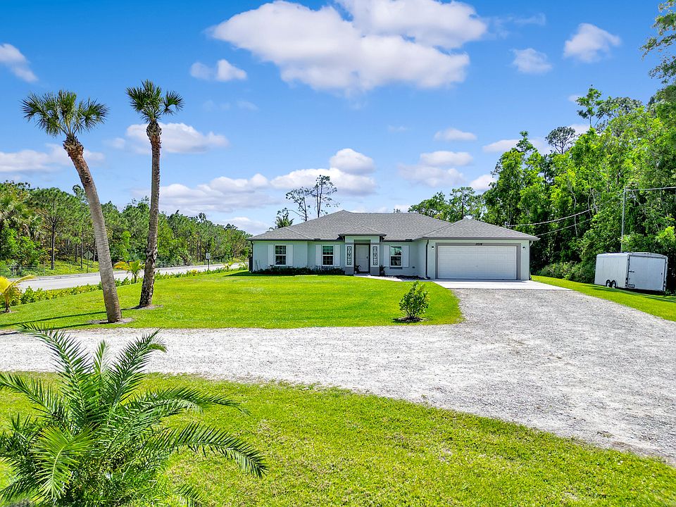 Experience elegance at its finest in this stunning single-family home located on a corner lot spanning 1.25 acres. This sophisticated residence was built in 2022 with meticulous attention to detail. Boasting four bedrooms, three bathrooms, and a two-car garage, this home offers plenty of space to satisfy all of your lifestyle needs. The gourmet kitchen is a chef's dream, featuring top-notch GE appliances like an induction stove, cooktop, air fryer oven, quartz countertop porcelain farmhouse, and sleek solid cabinetry. Entertain guests effortlessly in the connected living and dining area, or step outside to the beautifully landscaped backyard oasis complete with a sparkling pool and fire pit. The main suite is a retreat in itself, offering a spacious walk-in closet and a versatile den perfect for an office or fifth bedroom.