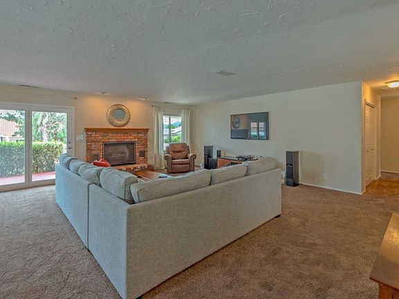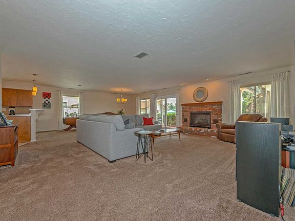 Beautiful, immaculately maintained home in Prescott Country Club! Amazing landscaping in both the front and back of the home with a picturesque covered back deck and a vinyl fence with RV gate, parking and hook-ups. Spacious great room with woodburning fireplace, big dining room and kitchen with all stainless-steel appliances and a breakfast bar. Master suite with large walk-in closet, bathroom, and separate back deck access. Third bedroom could also be used as a den with beautiful custom built-in bookcase and shelving. Backyard is a private sanctuary, perfect for relaxation and entertaining. With pavers, a fire pit, and an exterior shed, this backyard has it all. Picture-perfect home in this desirable neighborhood will not last long. Schedule a showing today!