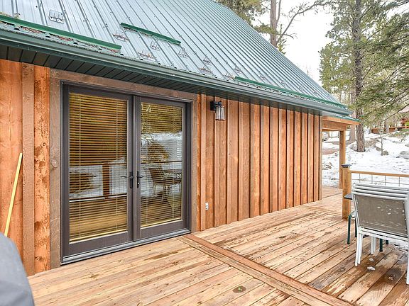 Contact listing agents Scot Munro 605-641-6482 or Heath Gran 605-209-2052 with Great Peaks Realty. This cute & cozy cabin is just steps away from Terry Peak Ski Resort – and has been well-kept and nicely updated by its current owners. A new covered front deck creates a welcoming entrance and wraps around the side of the home over to the grilling area and 2nd entrance. Towering pines surround the quintessential cabin and create a peaceful & private setting. Step inside, and enjoy the open layout that is ideal for cooking and entertaining your family & friends. The newer flooring & trim, solid wood doors, beam accents, and wood burning fireplace are all perks of this space. The kitchen comes equipped with appliances, and the cabin will be turn-key ready for your upcoming rentals. The main floor has 2 bathrooms, both of which have been updated with a fresh & clean look. The cabin has 3 bedrooms; one on the main floor, and 2 large bedrooms upstairs that each boast tongue & groove vaulted ceilings with large windows that frame views of the pines. The house does include newer cove & baseboard heaters, PLUS brand new windows, siding, & insulation.