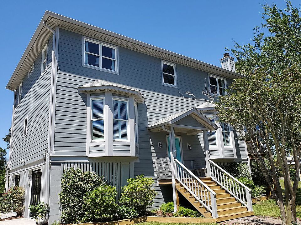 For sale by owner and on the market for the first time, this meticulously maintained four-bedroom, three full bathroom home, with deeded access to the beach, sits on a 1/3-acre lot on the desirable north end of the Tybee. The shared neighborhood dock leads to a soft sandy beach where dolphins and fishing boats are daily sights. This bright and airy home with its open design and three levels of connecting decks creates a perfect space for both indoor and outdoor entertaining. Also unique to this Tybee home is ample parking for friends and family. A full bath and one of the four bedrooms are located on the first floor. A second bathroom and the remaining three bedrooms, including the master bedroom suite, are on the second floor. The spacious master bedroom features his and her walk-in closets, vaulted ceilings and double glass doors to the upper deck where there is a partial ocean view. The large master bath features double sinks, a jacuzzi tub and a private toilet area. For those looking for island life and a move-in ready quality-built home, look no further.