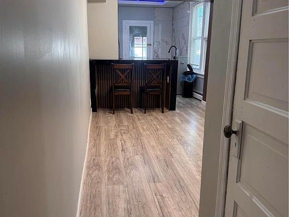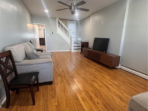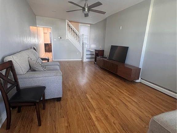Stunning 5-bedroom row home with modern amenities and spacious living area, perfect for families or roommates. Modern kitchen with sleek gray cabinets, stainless steel appliances, and stylish blue LED ceiling accents. Efficient layout includes a washer/dryer combo near the window for maximized space. Perfect blend of functionality and contemporary design!