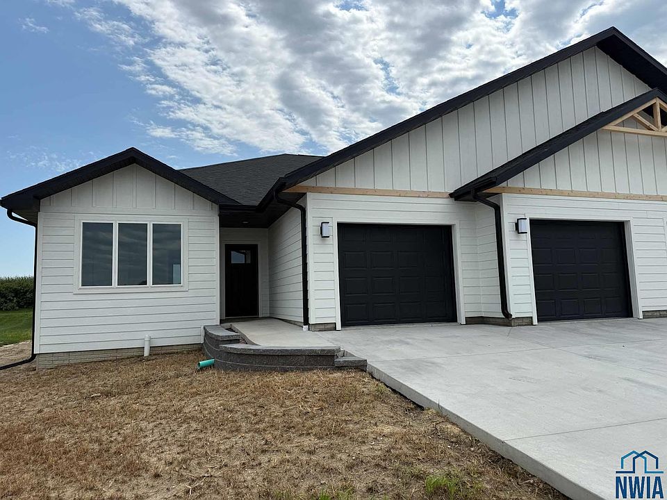 EASY LIVING. NO HOA. FULL BASEMENT. This 2025 duplex unit is designed with an effortless open layout on the main floor. It is built with 9' ceilings and a vault. A spacious covered patio is located out back which provides the perfect spot for entertaining. The main floor has luxury vinyl plank flooring with carpet in the primary suite. The kitchen boasts custom cabinetry in a nice warm color way and a tiled backsplash giving a modern look. The countertops feature quartz with a spacious island. This unit has two bedrooms and two bathrooms on the main floor. The primary suite features a walk-in closet as well as a 3/4 en-suite bathroom equipped with an onyx vanity and LOTS of storage. Rounding out the main floor is a dining space, guest bedroom, and laundry. The attached double garage is fully finished and contains floor drains. A bonus to this duplex unit is the ability to add value by finishing off the nearly 1,400 square feet basement. There's room for a spacious living, two more bedrooms, a bathroom, and utility room. Don't miss out on this incredible opportunity!