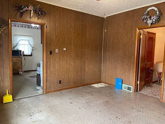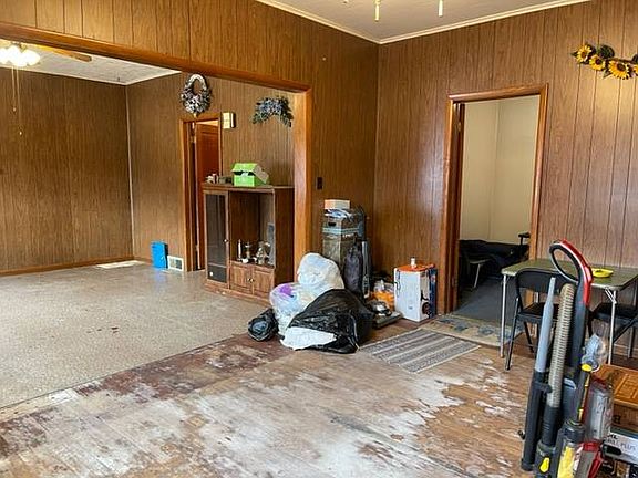 2 bedroom, 1 bath home with 2 car detached garage and other out buildings. Property consist of five 66 foot lots plus half of vacated alleys to the West and South. Warm Slough runs through the South end of the property making that area in the flood plain, house is not in the flood plain but South garage (garage 2) is.