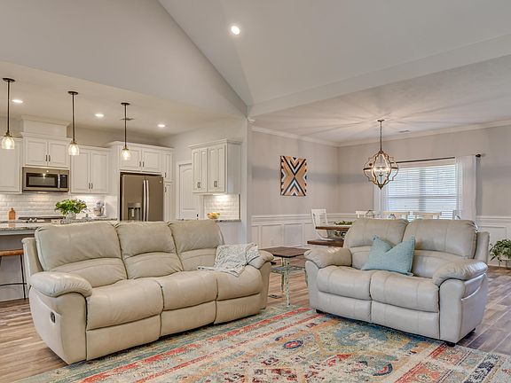 Welcome to 1104 Birdie Place, a stunning residence boasting an open floor concept, formal dining room, three spacious bedrooms, three bathrooms, and a bonus room, spanning 3,184 sq ft of living space. Notable upgrades include new light fixtures in the master bedroom and master walk-in closet, built-in shelving in master closet, white mortar, glass shower in the master bathroom, ceiling fans in the bonus room, floating shelves in living room, added shelves and cabinets in pantry, along with mosaic tile. Work benches in 3rd bay garage gas stove, gas water heater, gas fireplace. Step outback to discover a glimpse of the golf course, a large covered back porch with a wood-burning fireplace ideal for entertaining, beautifully landscaped yard with 9 zone sprinkler system, and a three-car garage, and a walk-in crawl space. This home sits on a fenced in corner acre lot.