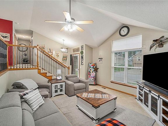 Fantastic home with an oversized 3 car garage located in the highly sought-after Smithville School District! The main living area feels open and welcoming with vaulting ceilings. This space flows into the kitchen area where you will find stained cabinets, a breakfast bar, and an eat in kitchen dining space with a sliding door that opens up to a huge new deck including stairs. The deck overlooks the large fenced in yard. Down the hall you will find 3 bedrooms, 2 full baths & the laundry closet is on bedroom level. The finished basement has a great space to utilize as a hangout space for the family, a home office, or a playroom. This space includes a powder bathroom & walks out to the level backyard. This home also includes a new water softener and filtration system that is staying with the home. Located just minutes away from Smithville lake and Paradise Golf Course with No HOA!