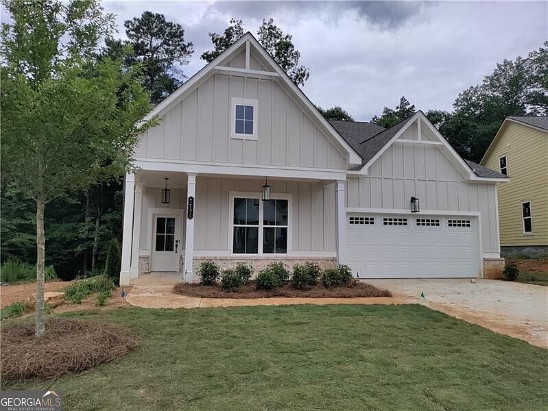 Welcome to beautifully crafted Ridgewood floor plan. As you enter this home you immediately notice the incredible light filling the space. This open plan features a beautiful large kitchen w/ stainless steel appliances and a grand island. Oversized owner suite is conveniently located on the main floor. Other convenient features of the home include hardwood flooring, oversized entry ways, high ceilings, cabinet microwave, oversized covered patio, rocking chair front porch, luxurious lighting package, easy access floor plan, HOA maintained landscaping, and weakly trash pick-up and an elegant lighting package throughout the home. All located on a beautifully landscaped private lot w/ an amazing creek. You will love this gated, low-maintenance, active adult community, located close to sought after downtown Woodstock, and nearby Towne Lake, with ideal shopping and dining. Model Homes Hours: 11:00 AM - 6:00 PM Monday, Tuesday, Thursday, Friday, and Saturday. 1:00 PM - 6:00 PM Sunday. Appointment Only Wednesday.