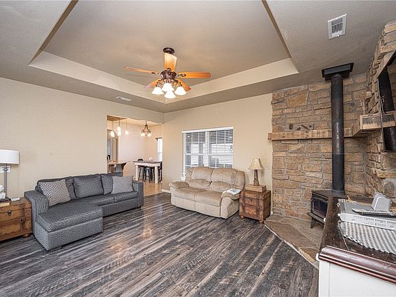 3 Bedroom 2 Bathroom with wood burning stove in the living room. Split floor plan with a rustic decor. Large, fenced backyard with a pergola located in the front for your enjoyment. Back room is closed in for entertaining guest or just hang out with the family.