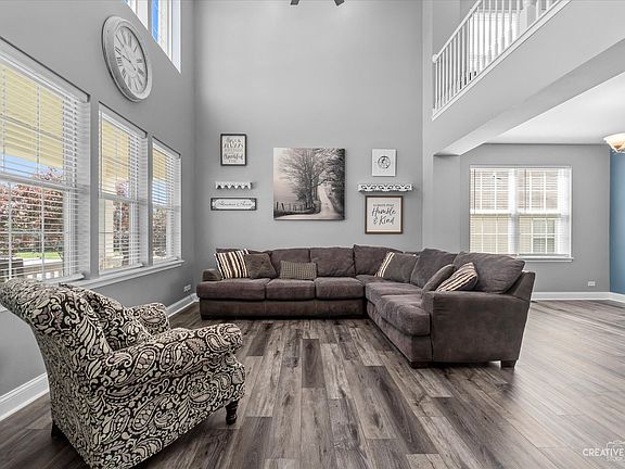 Multiple Offers Received, Highest and Best due by Thursday 7/11 5PM***THE WOW FACTOR IS HERE!!! This immaculate, charming home features a partial brick front and a large front porch. Welcoming you into a stunning 2-story foyer. The cozy fireplace with ceramic surround, painted oak railings, and chef's kitchen with lighting above and under the 42" cabinets are must-see highlights. The kitchen also boasts an 8ft center island with a full spacious eat-in, an open layout, and tons of natural light, complemented by all stainless-steel appliances. The main floor offers a hallway versatile bench space, a half bath with a closet, and a laundry room with a custom in-wall utility space perfect for storage. Nest Thermostat!! All closets are equipped with motion-sensor lighting. The fully finished, heated 2-car garage includes surround sound hookups extending to the front porch, features a water spigot and two 20amp dedicated circuits to power any handy work. The home is adorned with can lighting throughout, and the staircase to the second story is extended in width. Upstairs, you'll find four nicely spacious bedrooms, including a vaulted owner's suite with USB outlets at bedside and freshly painted luxury bath with new fixture and a large walk-in closet. The second story also includes a very accommodating loft area and a catwalk with 2 switched outlets, fantastic upgrade to accommodate holiday decorations. The full deep basement is roughed-in for a bath and has an additional 100amp sub panel for any future electrical needs, supporting all the beautifully installed electrical touches throughout, also offers a luxe-style home theatre room with built in shelf with lighting, surround sound, a projection screen also wired for a wall mount TV, and an illuminated doorbell indicator light. Designed and crafted to perfection, the exterior features landscaped in-ground lighting, providing pure elegance at night. The large, fenced backyard adds to the appeal. This home is filled with tons of bells and whistles, nestled in a great community and this block is known for superb holiday decor.