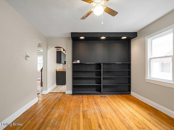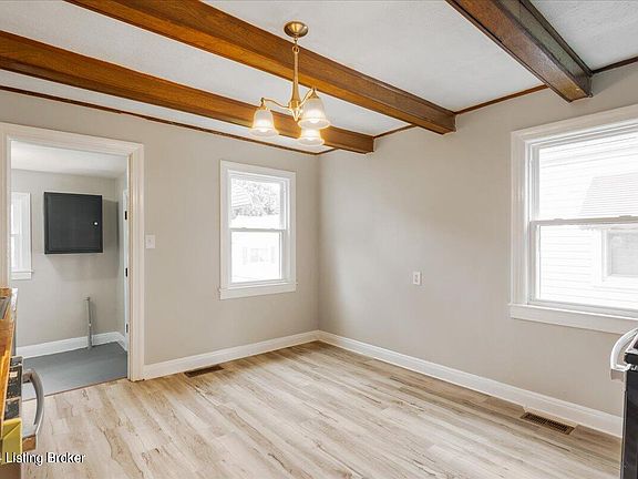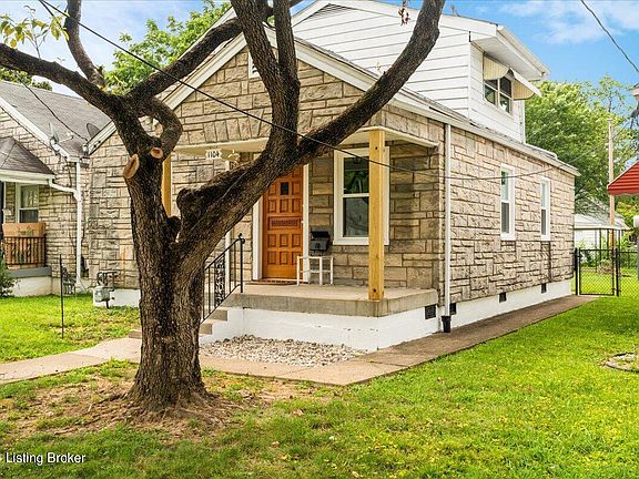 If you've been searching for a newly updated home in a central location, you found it with this charming Bedford Stone home in Thornberry. With 3 bedrooms, 1 bath, all new windows, new AC, and an updated kitchen, you'll have peace of mind and plenty of space. Greeted by a covered front porch, you enter into a spacious living area with hardwood flooring and a custom entertainment center with recessed lighting. Your updated eat-in kitchen generously offers plenty of cabinetry and shelving, as well as stainless appliances and butcher-block countertops. Unique archways and rustic wood beams across the ceiling elevate the design. Just beyond the kitchen, you have a laundry room with a side door to the outside. Two nice-sized bedrooms are on the main level, and on the second level, you have a huge bedroom with tons of space, a fireplace, and extra shelving. Outdoors, you have a spacious, fully-fenced-in backyard with a detached, 1-car garage with a covered patio, perfect for entertaining guests. The greenspace is wide and flat, so ideal for gardening and for your furry friends to run around. This home conveniently located near dining, retail, and expressways. It is also just down the street from Iroquois Park, where you can enjoy hiking trails, a gorgeous lookout, golf course, and one of the best disc golf courses in the city. There are tons of entertainment options nearby with Colonial Gardens and Churchill Downs, as well as an attractive calendar of concerts and family events at the Iroquois Amphitheater. Don't miss out on the opportunity to make this your very own home!