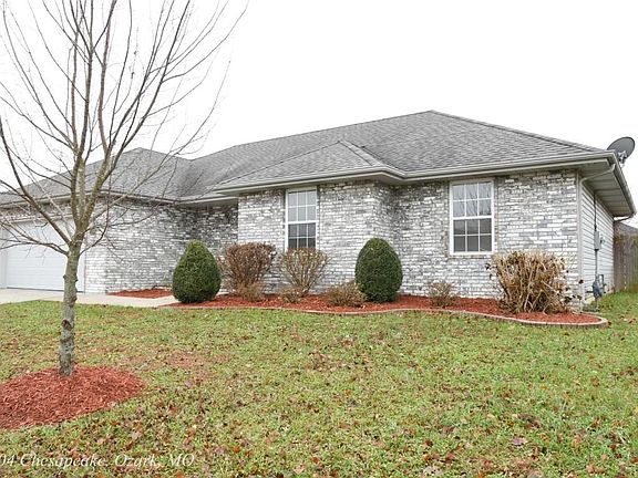 1104 E Chesapeake Dr. Ozark, MO 65721 Great home with split bedroom plan, brick front, vinyl sides, tile floors in the kitchen, baths, laundry and entry. Raised ceilings, ceiling fans, attic fan, wood trim, patio, landscaping, oversize two car garage. (Measurements are rounded. Buyer to do their own due diligence. Seller closes at Great American Title only. Buyer may use title company of their choice. Seller will not pay any additional fees for the Buyer for a split closing.)
