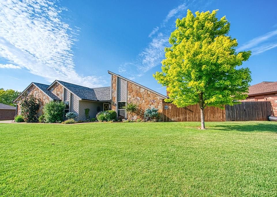 Great home in a highly sought after neighborhood. This 3 bed 2 bath home sits on a lot and a half in a cul-de-sac in the Francis addition. It has a large living room with a beautiful fireplace and built-in cabinets for storage. The kitchen, dining room, and hallway have vinyl flooring which was installed in 2019. Big master bedroom with a walk-in closet and granite countertops in the bathrooms. The secondary bedrooms are decently sized with lots of closet space. Large laundry room with built-in cabinets. This home also has newer windows, roof was replaced in 2018 along with the A/C unit, a tankless water heater was installed in 2015, water softener, storm shelter in the garage, and sprinkler system. It has a lovely covered patio for entertaining, relaxing, or just to have your morning coffee.