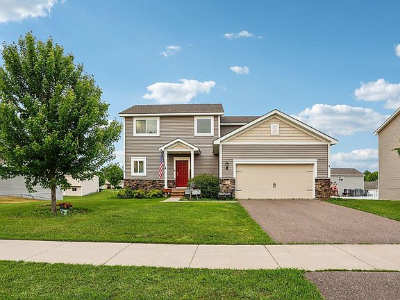 Welcome to this beautifully maintained two-story home, tucked away in a quiet, family-friendly neighborhood. With charming curb appeal, stone accents, and a spacious two-car garage, this property blends style, function, and comfort. Enjoy a newly added deck—perfect for relaxing or entertaining—and a fully finished lower level that offers abundant flexible space to fit your needs. All three bedrooms are conveniently located on the same level, giving peace of mind and practicality. Surrounded by wide-open skies and set in a peaceful suburban setting, this home is truly a must-see.