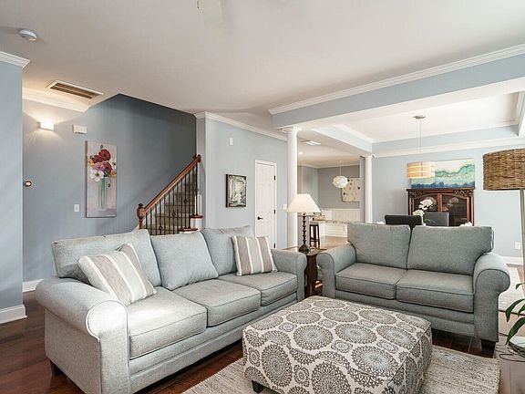 From the moment you step on to the Covered Front Porch, YOU WILL FALL IN LOVE! Gorgeous End Unit Townhome that only attaches to its neighbor by the Garage Wall. Welcoming Foyer, Spacious & Open Floorplan w/ a ton of Natural Light that shines beautifully through Plantation Shutters that are thru out the Home. Family Rm w/Stone Gas Fireplace opens to Separate Dining. Large Kitchen w/ Oversized "Pull up a seat Island",Lots of Cabinets & Countertops,Stainless Appliances,Walk In Pantry, Add'l Storage in Island. Built in Breakfast Rm seating makes for a quant area when hosting non-formal gatherings. Sunroom off Kitchen is a wonderful spot for additional entertaining. Main Flr Primary Suite w/ 2 Closets,Large Walk In Shower, Dual Sinks. Laundry/Mud Rm right off Garage w/ Coat closet & Additional Cabinets for Storage. Just up the stairs is a wonderful reading nook/Loft. Big Secondary Bedrooms w/Enormous Walk in Closets and an Additional Full Bath to share. Home has a Private driveway that is NOT shared with a neighbor,OVERSIZED 2 CAR Garage w/ample space for additional parking in driveway. THIS IS THE ONE! Welcome home!