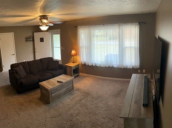 3 bedroom ranch home, edge of town. Master bedroom has full bath w/walk in tiled shower. $100 Annually for road fee. Ceiling fans, 10x16 shed. $1000 carpet allowance.