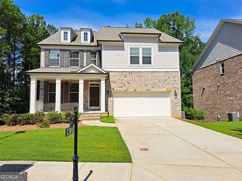 Move-in ready home in Kempston Place! Beautiful gated community located inside the emerging Technology Park, a thriving center for innovation, with easy access to work centers, recreation, dining, and shops in and around Johns Creek. This four-sided brick home on a wooded corner lot features an open concept floorplan, an unfinished basement, covered front porch with a sitting area, and a deck overlooking trees. Main level includes a welcoming foyer and separate dining room that leads into a gourmet kitchen featuring stainless steel appliances, stone counters, white cabinets, a large island, and a breakfast nook overlooking a large family room with a fireplace. The main level also has a secondary bedroom and a full bathroom. The upper level consists of two other secondary bedrooms, a shared full bathroom, a secondary suite (bedroom with full bathroom ensuite), a laundry room, and an oversized Primary Suite. The gorgeous Primary Suite boasts a luxurious ensuite bathroom with a separate tub and shower, double vanities, and a large walk-in closet. Spacious 2-car garage and lots of space for additional parking on the extended driveway. Everything you are looking for in the perfect home is all here at 1104 Hemingford Way, come see for yourself! Copyright Georgia MLS. All rights reserved. Information is deemed reliable but not guaranteed.