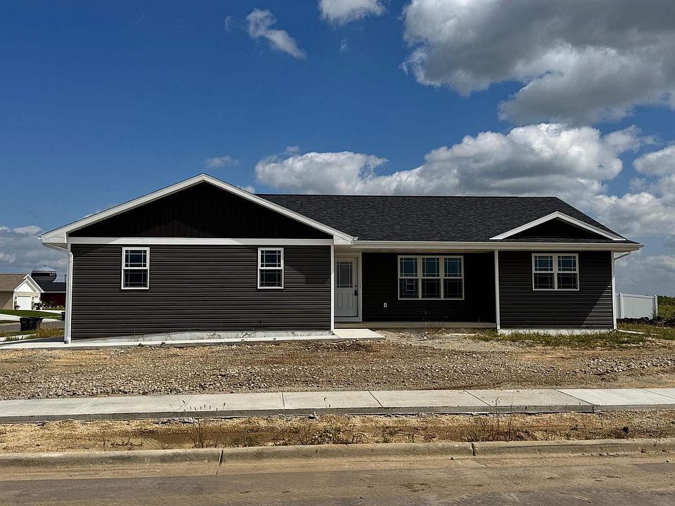 You deserve a home in Red Hawk Farms! This nearly 1400 sq ft home offers 3 bedrooms, 2 baths, and a spacious open floor plan with vaulted ceilings and luxury vinyl plank flooring. The kitchen is a showpiece with a large island, walk in pantry, and stainless appliances ideal for everyday meals or entertaining. The oversized primary suite includes a private bath, double vanity, and walk in closet. Guest bedrooms are generously sized, and the oversized 2 car garage plus main floor laundry add convenience. The lower level is pre designed and ready to finish with an egress window offering potential for additional living space. Combining comfort, style, and function, this home is move in ready in the desirable Red Hawk Farms neighborhood where modern living meets small town charm.