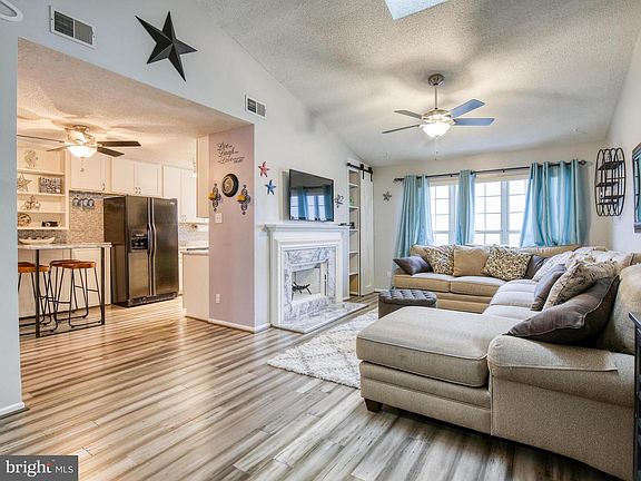 Remodeled Penthouse Condo in the popular Fox Chase @ Exeter Subdivision that features a community outdoor swimming pool and tennis courts and located near the Leesburg Outlets! ... Gorgeous remodeled 2 Bedroom 2 Full Bath Penthouse with new Bamboo flooring, 3 custom built sliding barn doors, awesome extended kitchen with custom built-in table, new white kitchen cabinets with soft close drawers and built-in trash bin, new upgraded natural marble Quartzite counter tops and accented wall to wall backsplash, ceiling fan and high end black appliances. Primary Bedroom with a full length mirror and ceiling fan and upgraded Primary full bath. Hall bathroom has Jerusalem tiles and walk in shower with sliding glass door. Both bathrooms equipped with taller vanities and toilets. Lots of natural light in the spacious living room with a cathedral ceiling, ceiling fan and skylight, fireplace with marble Quartzite surround (matches the kitchen countertop) wide mantle and built-in shelving. Closet organizers in all closets, New door hinges and door knobs, New light switches and electrical outlets, New faucets, Newer hot water heater, Newer A/C Unit (inside and out), New light fixtures throughout, new replaced water pipes. So much to offer!