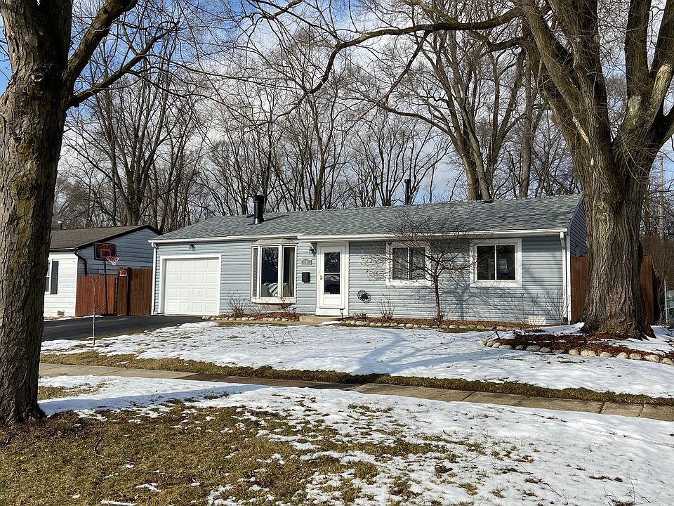 Super cute and nicely updated Ranch style home w/fenced yard is freshly decorated and provides great spaces for living and entertaining. Spacious LR w/new wood flooring, bow window and wood burning frplc (just serviced 2019) w/wood mantle & surround. Eat-in KIT w/new wood flooring, subway tile backsplash & SS appl package opens to rear addition (with newer wood flooring) currently used as a dining room but could be den/office/other.... SGD's lead to beautifully landscaped backyard w/large concrete patio, paver patio, peaceful deck sitting area, huge playset, cool clubhouse, large shed and a 1 year old pool. Updated Bath w/subway tile surround in bathing area. Large master bedroom has newer wood flooring and double closets. Newer Samsung washer and dryer in finished, heated & attached garage with loads of room for parking & storage. Newer hot water heater and approximately 60% of roof replaced in 2017 due to storm damage. Energy efficient thermopane windows. Beautifully done and truly ready to just move in.
