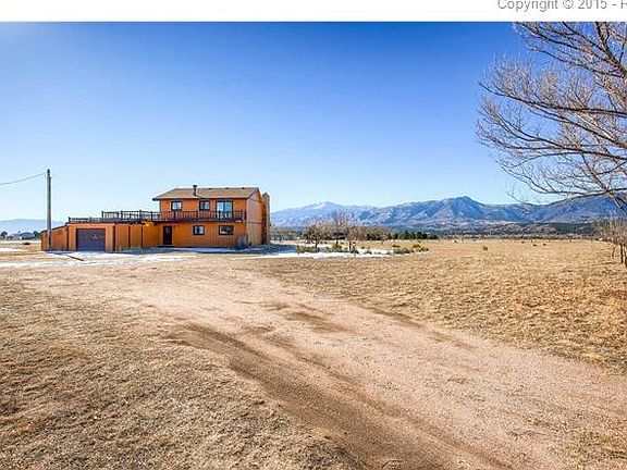 AMAZING 2.5 acre property just minutes from everything with STUNNING Pikes Peak and mountain views! Charming custom home with unobstructed views of Pikes Peak... Located on 2.5 acres, this home offers country living within the heart of the city! Enter into this home and immediately you are greeted with the charm of the vaulted ceilings, stone fireplace, open floor plan, and views of the Front Range! The 2 bedrooms on the upper level each walk out to a large rooftop deck! Two car garage is tandem, but with a pull-through. Adjoining the garage is a large storage area easily allows for more cars! The overall garage and storage space is 36x22 (over 790 s/f!) The previous owner stored four cars in this space! Well and septic make the property self contained! There is plenty of space on this lot for gardens, additional buildings, or storage! Parts of this custom home are super retro, but it's a great property with loads of potential! MUST SEE! Schedule your personal tour TODAY!