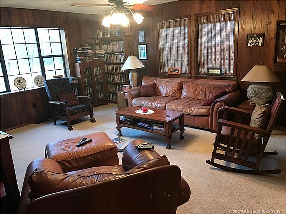 A tree lined driveway to this unique home on 17.3 acres m/l with country feel except it is in the middle of town. Two living areas, sun room, library loft, sewing room, stocked pond with a dock, creek, pool,Shop, RV storage, outbuildings, wildlife.