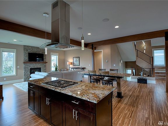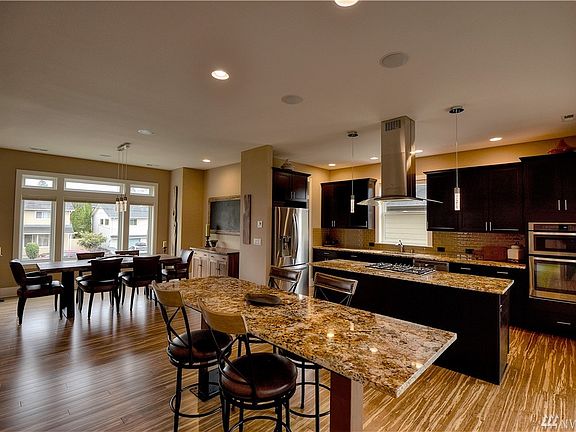 Quality, views & location make this lower Kennydale home a great find! Overlooking Lake Washington w/amazing westward views of the Olympics, sunsets, city lights & close to Coulon Park. 4 BR's, 3.5 BA, 3460 SF w/open concept great rm, spacious master w/vaulted ceiling, bonus room w/wet bar, roof top terrace, theater room, multiple balconies & double deep 4 car garage. Quality materials throughout including beautiful bamboo flrs, granite counters, tile showers, SS appliances & designer lighting.